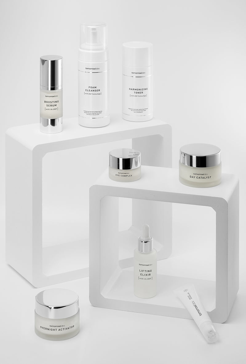 Die Tomorrowlabs Longevity Collection basiert auf der zum Patent angemeldeten HSF Technologie, die unter ärztlicher Aufsicht in enger Zusammenarbeit mit universitären Forschungseinrichtungen entwickelt wurde. Eine dermatologisch kontrollierte Split-Face-Studie belegt eine sichtbare Verjüngung in Form einer deutlichen Reduktion von Falten und Fältchen im Ausmaß von 2,8 Jahre in nur 6 Wochen.